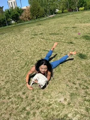 和狗狗打滚的下午,穿上蔷薇奇迹,面料舒适,透气性,就算运动几个小时也感觉不到束缚,没有汗水粘身的不爽,彻底解放双腿。