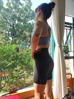 收到蔷薇寄过来的4分裤隔天就迫不及待的穿出门,锻炼时穿上课穿出街也穿,亲肤感透气在广东这样狂热的大暑天再舒适不过,就像是给大热天里的存储着一道冷空气。出汗大腿裤裆不粘,又恰好包裹好PP还能提臀美化臀线,点睛之处的还在于还能很好遮挡腰间两侧赘肉,平坦小腹,真是裸感天花板级别的酷裤,目前只有黑色和蓝色两款颜色,完全不能满足我一周7天的穿搭需求,求快多出几款色彩缤纷的4分裤吧,让爱运动爱美的我们可以挥洒一夏。